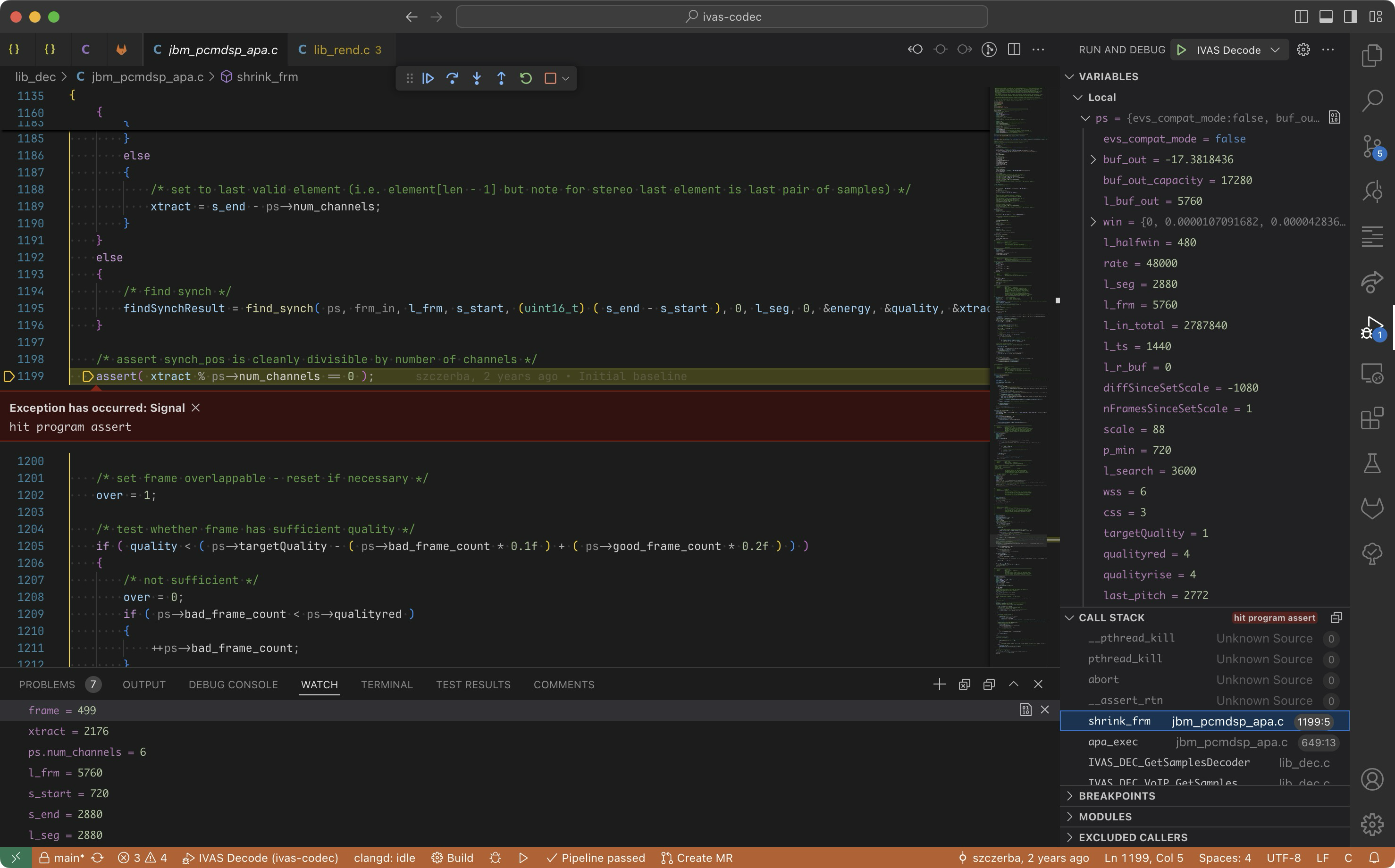 Assertion failed: (xtract % ps->num_channels == 0), function shrink_frm, file jbm_pcmdsp_apa.c, line 1199.