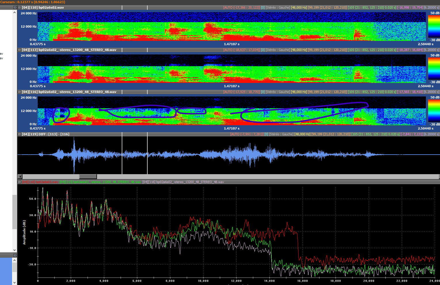 When running the combination float-float and fixed-float and comparing the synthesis at 13.2 kbps, the left channel has systematically a lower energy while the energy of the right channel seems approximately ok.