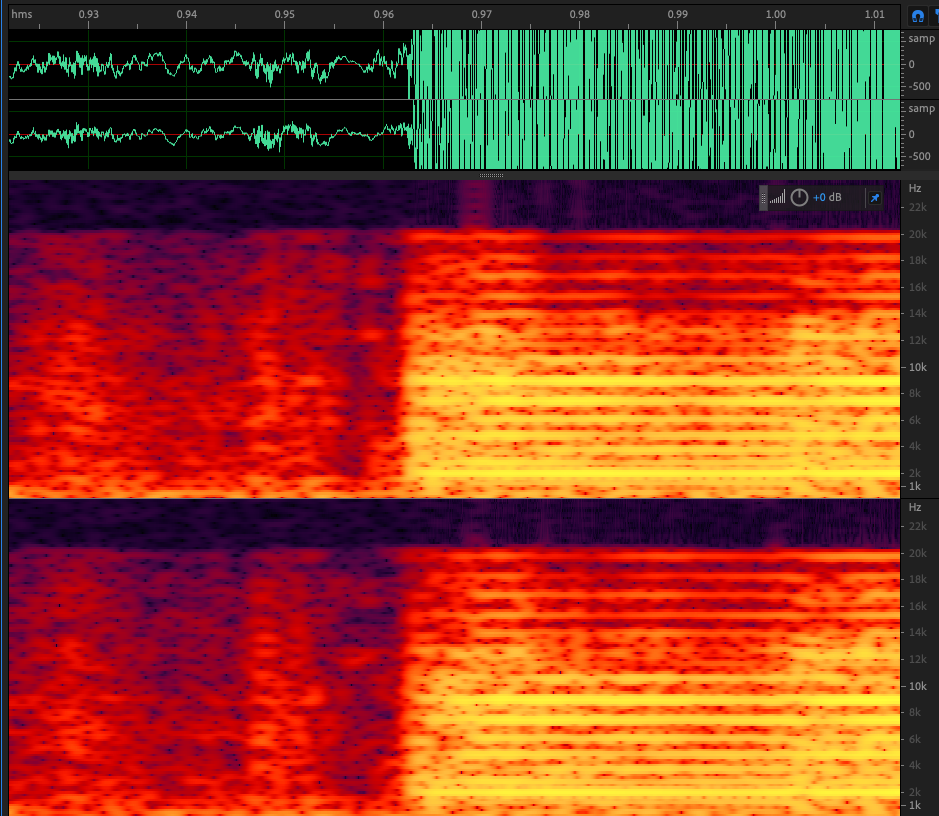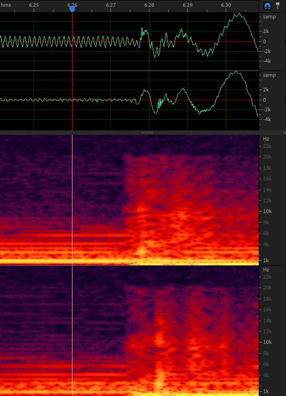 It should be noted that differences throughout the two signals is rather large when looking at the waveforms/spectrograms