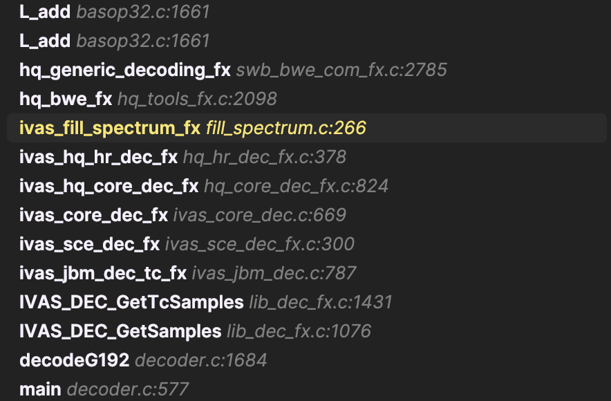 Using OMASA LTV input encoded with BASOP encoder, assert happens in BASOP decoder function ivas_fill_spectrum_fx