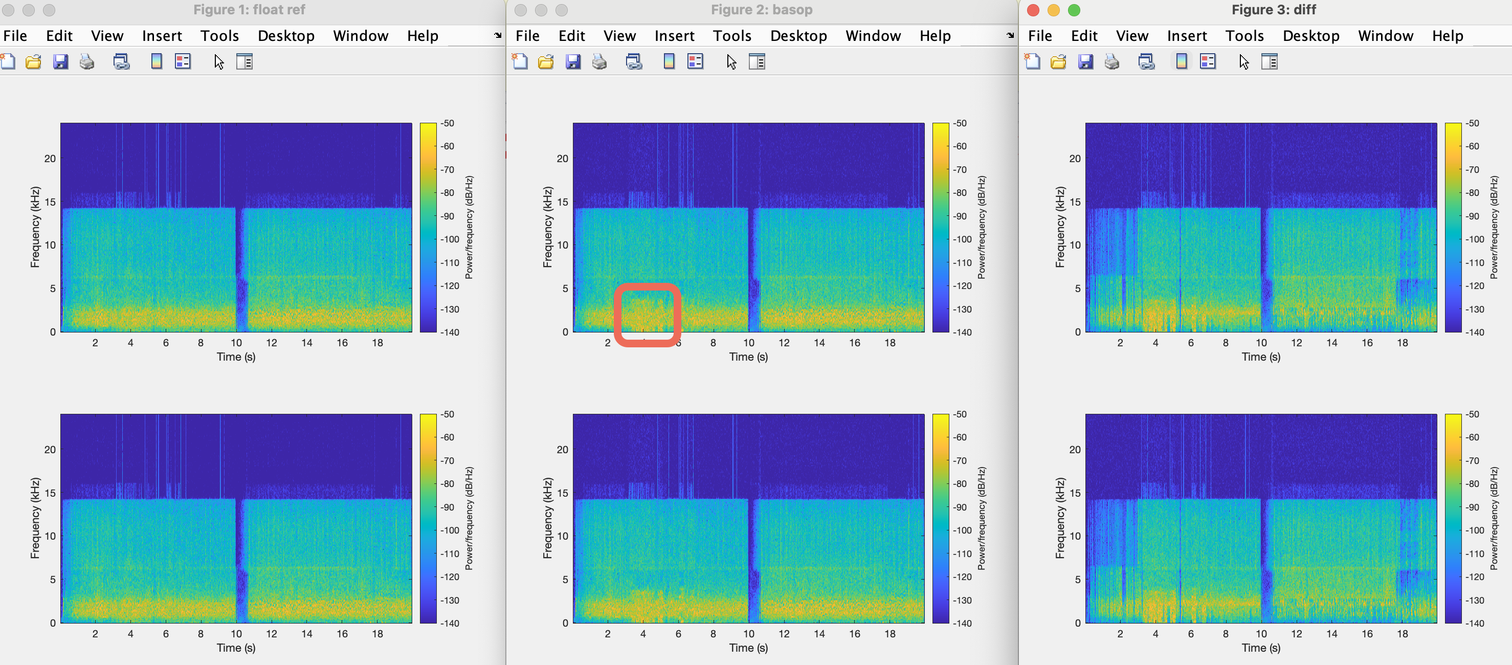 Here are the spectrograms although the effect is much more noticeable by listening.