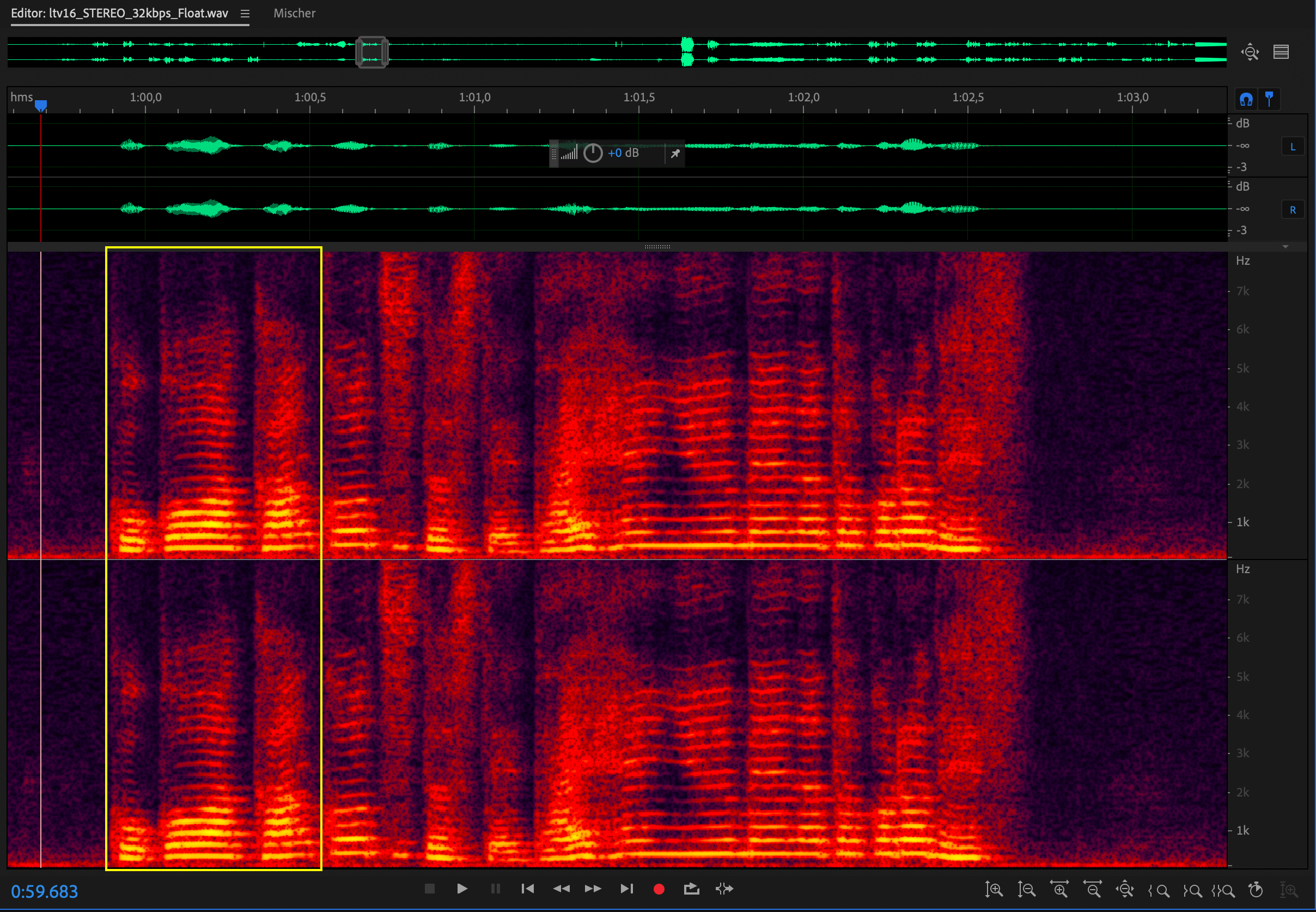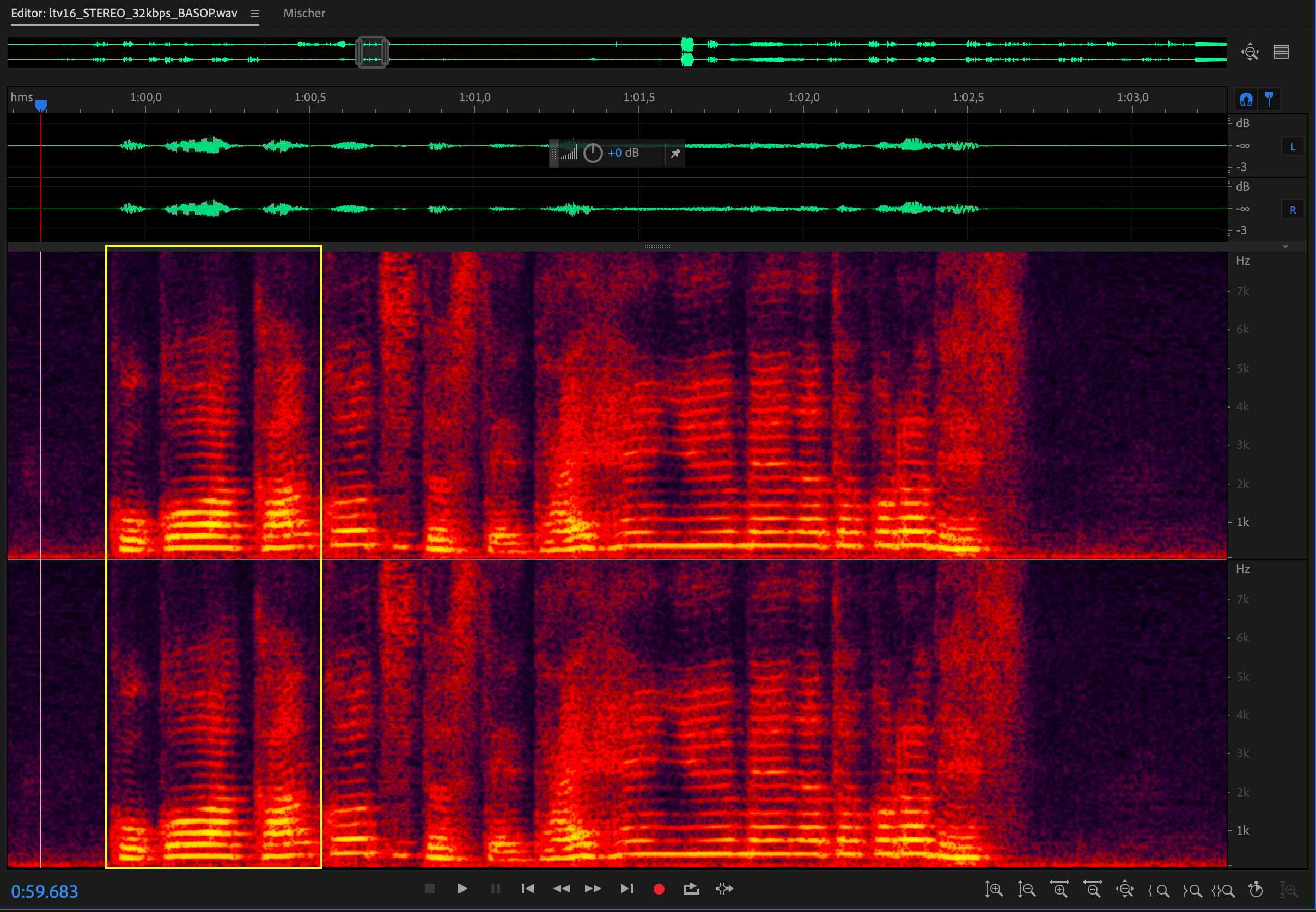 For certain speech segments, the BASOP encoder seems to exhibit a slightly higher inter-harmonic noise floor for certain speech segments. For example for the LTVs, between 0:59.88 and 1:00.80: