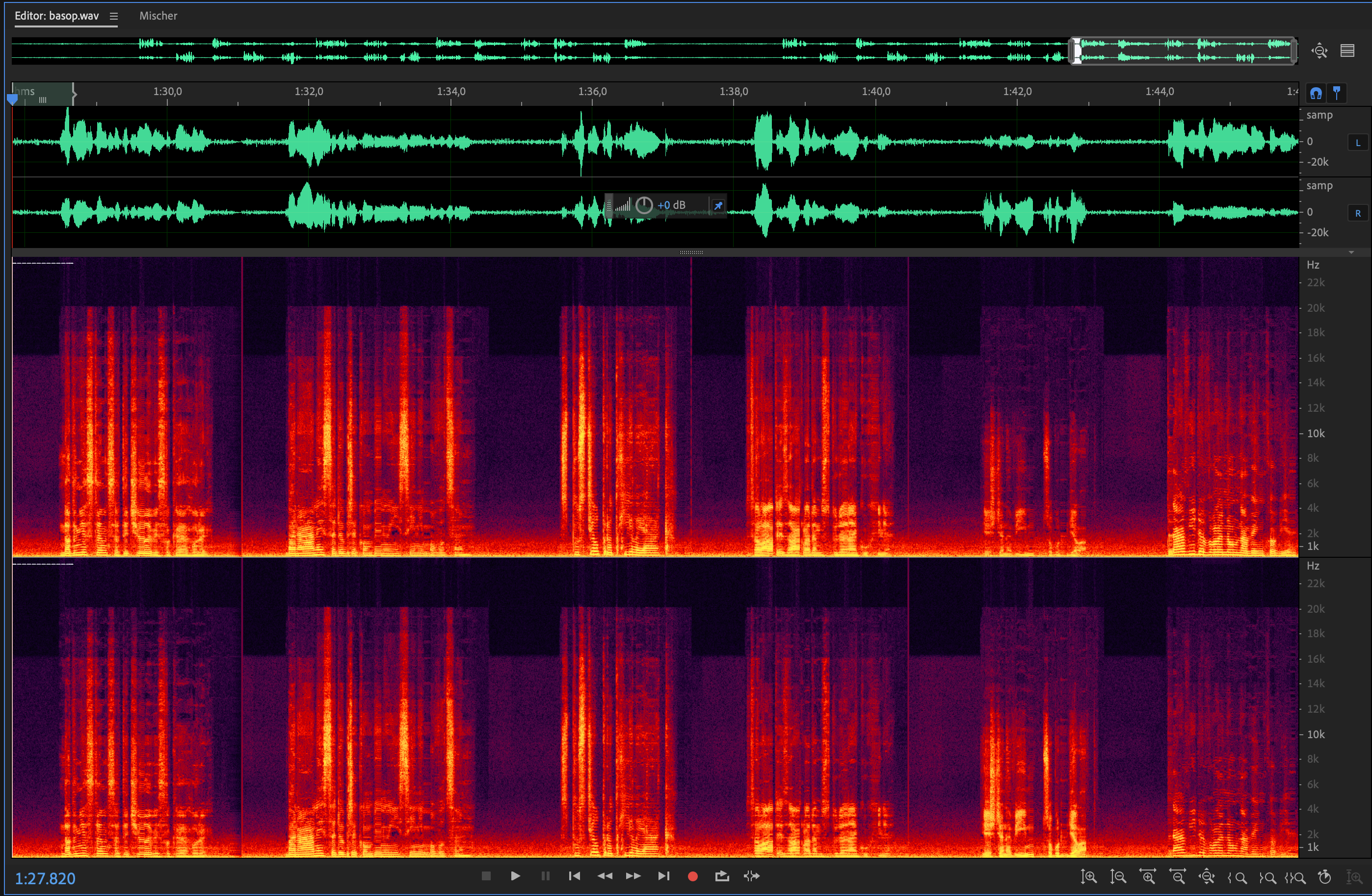 When decoding the bitstream with the BASOP decoder, the decoder introduces serveral audible clicks. Some of them seem to be for the transition active -> inactive, some other seem to come from PLC.