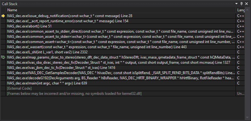 Assert in 5.1@24.4 kbps decoder, map_params_dirac_to_stereo, +10 dB LTV